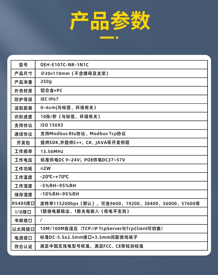 RFID高频读写器13.56MHZ工业读卡器modbus PLC读头AGV车轨迹定位