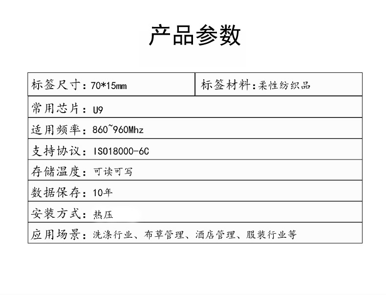 RFID洗涤标签服装酒店布草洗衣超高频柔性水洗无纺布织唛电子标签