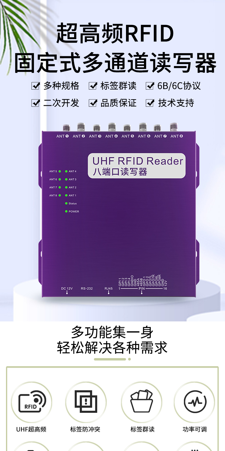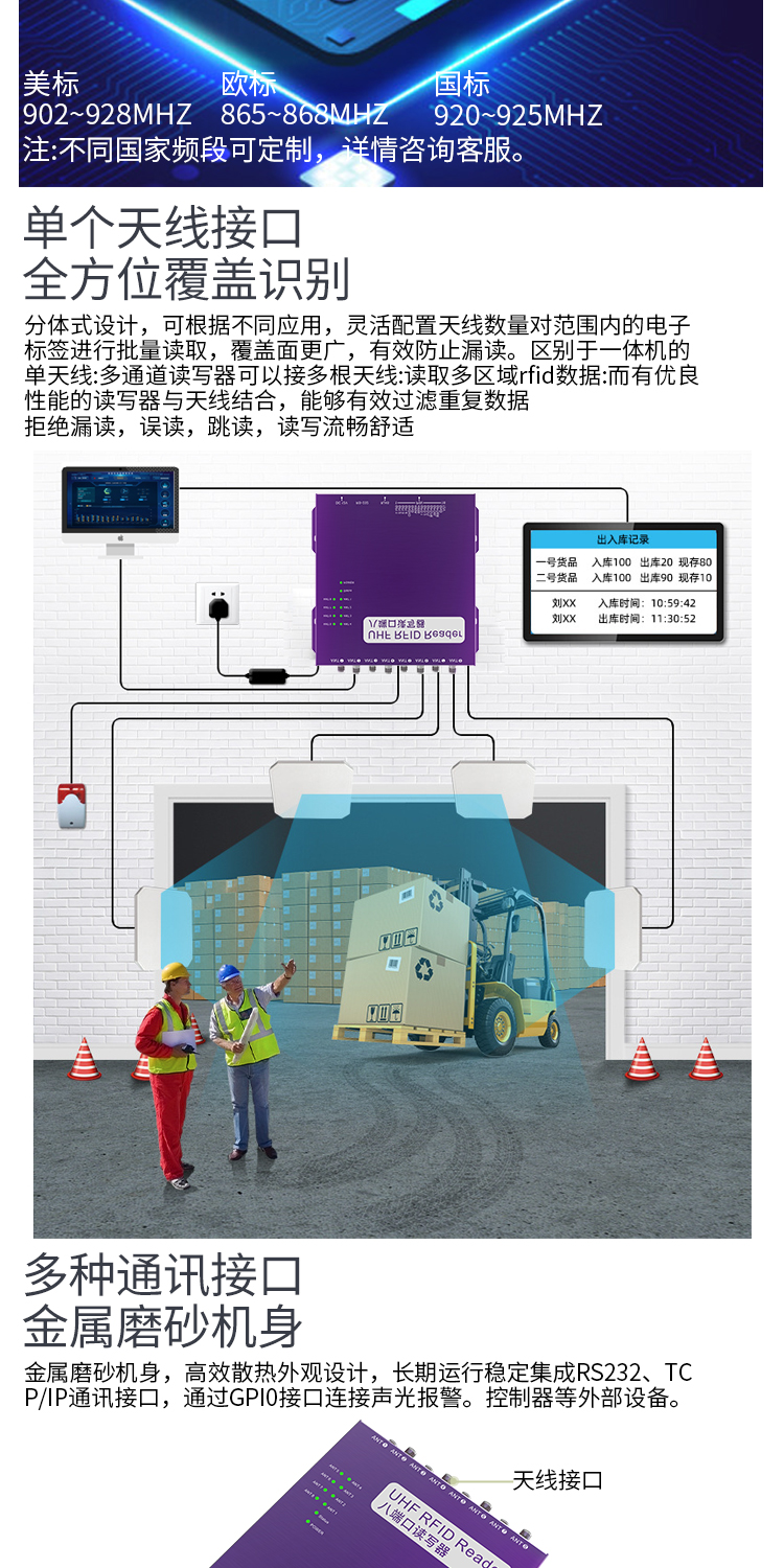 RFID智能双频安全门禁HF/UHF资产管理追踪多标签读取感应通道门