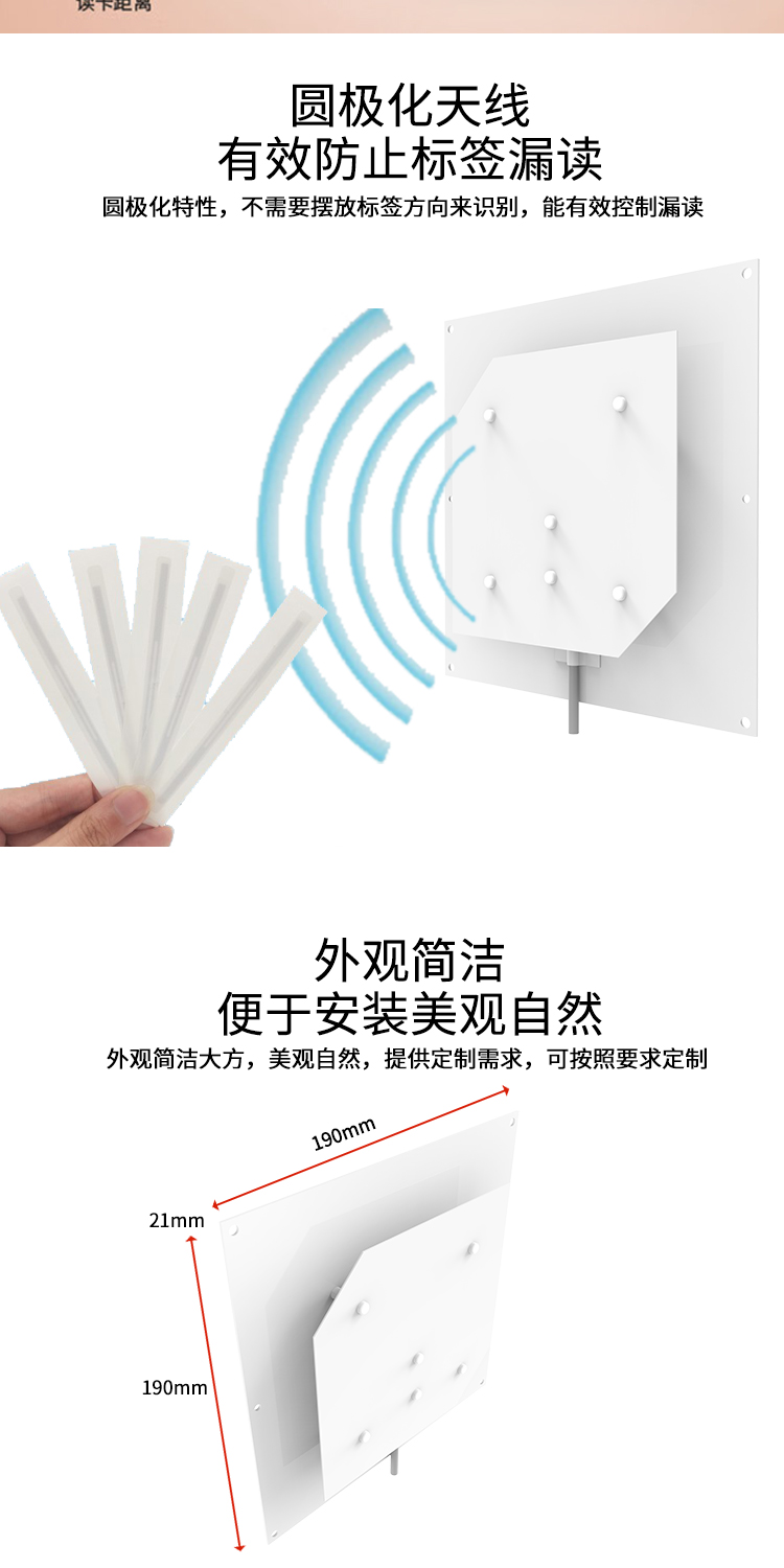 rfid门禁天线超高频UHF射频感应小型薄嵌入式安装智能柜货架天线
