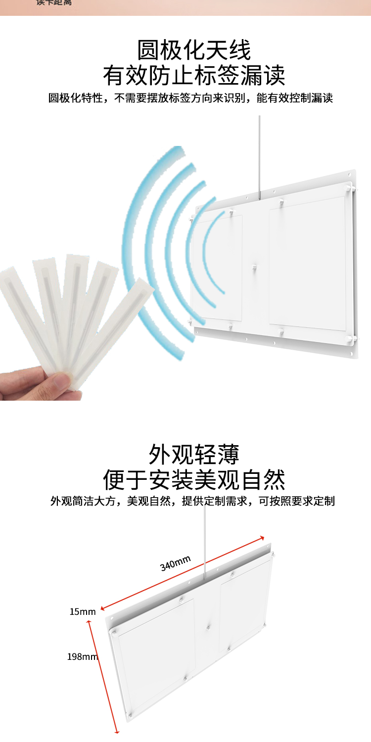 rfid门禁天线超高频UHF射频感应小型薄嵌入式安装智能柜货架天线