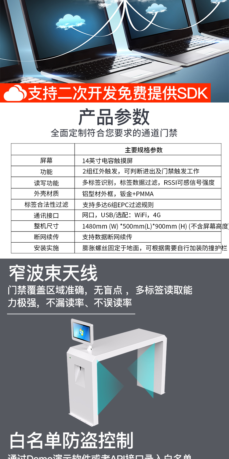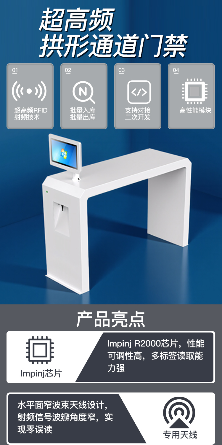 RFID智能双频安全门禁HF/UHF资产管理追踪多标签读取感应通道门