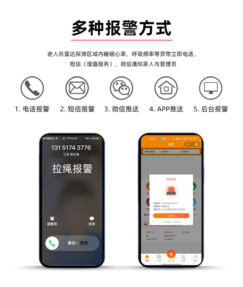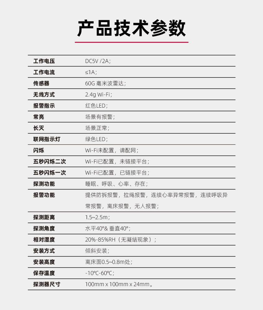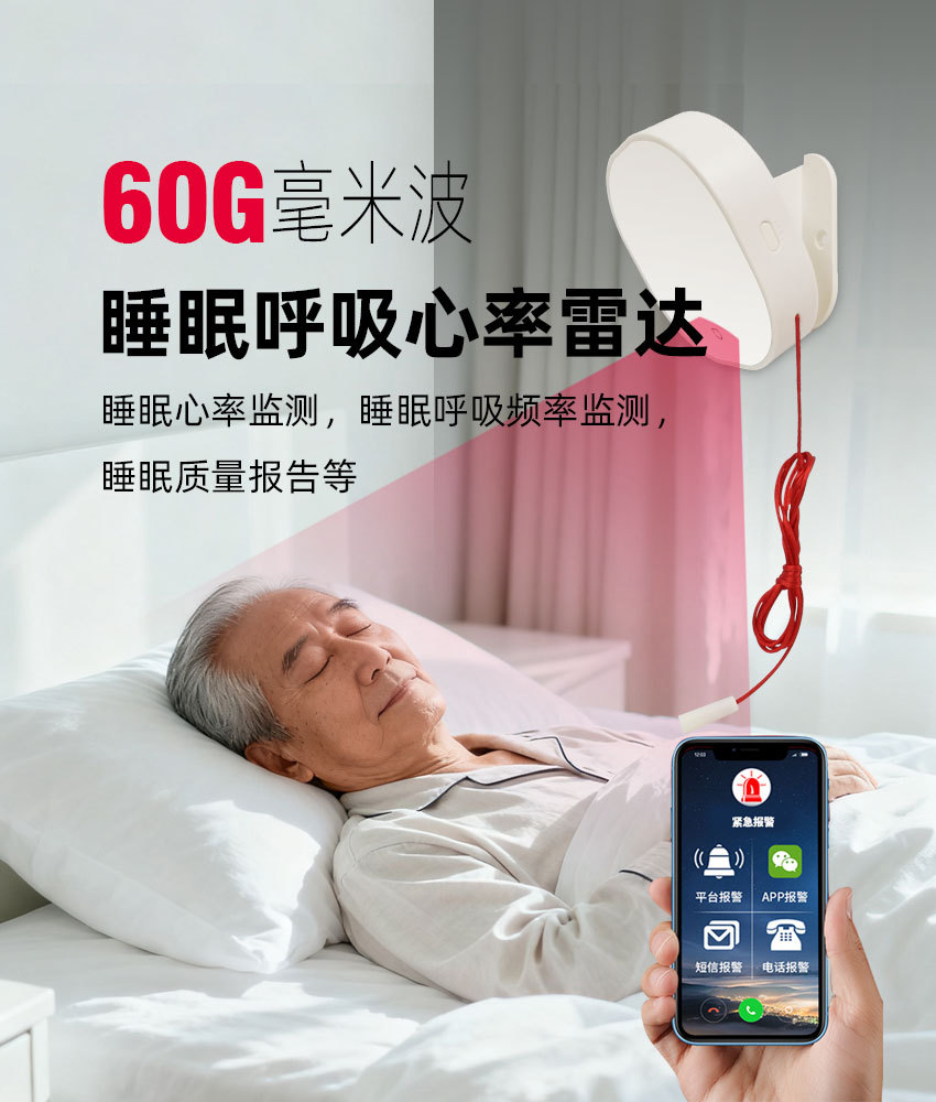 4G养老睡眠呼吸心率监测人体存在传感应60G毫米波生物雷达报警器