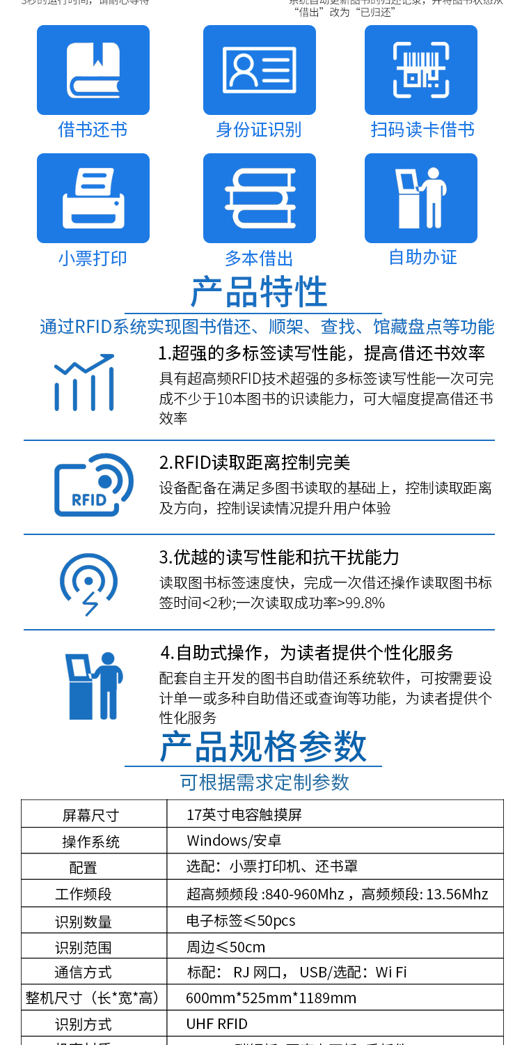 RFID自助借还书机智慧图书馆自助查询借还书终端阅览室自动借阅机