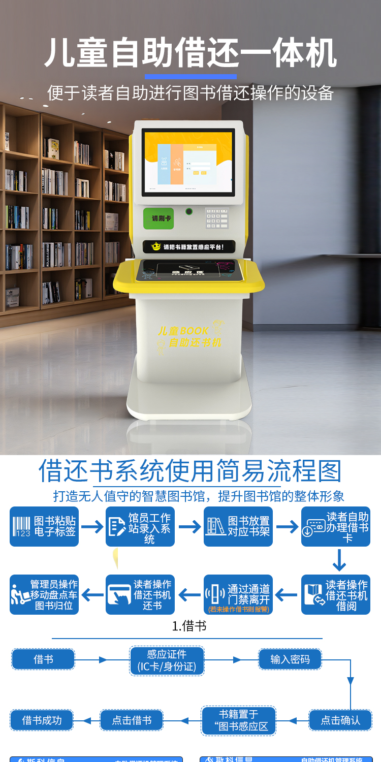 RFID儿童自助借还书机小学生智慧图书馆自助机绘本馆自助借阅终端