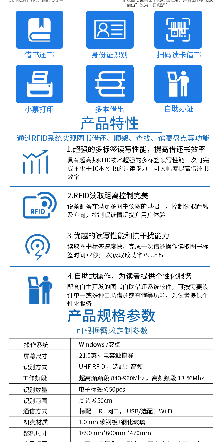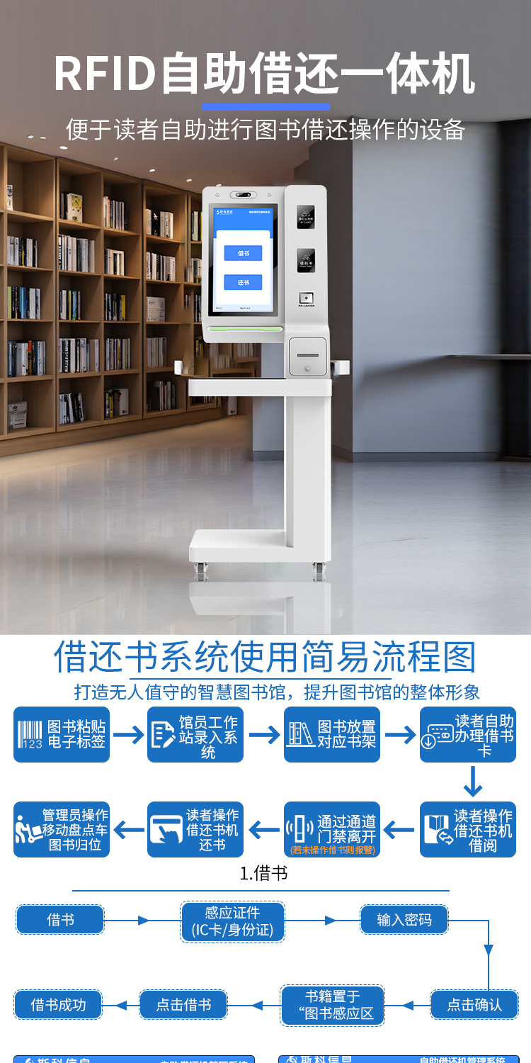 RFID儿童自助借还书机中小学智能图书借还管理系统自助借还书设备
