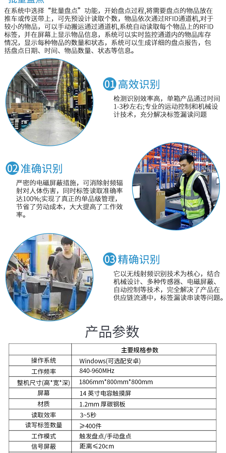 RFID隧道式盘点通道机自动化产线物流包裹分拣无人化仓库管理设备