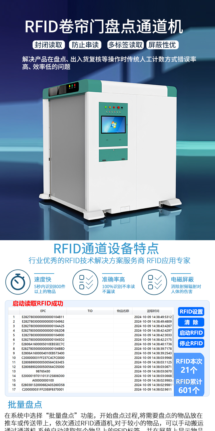 RFID智能盘点通道机仓储库存管理多标签同步读取批量扫描盘点设备