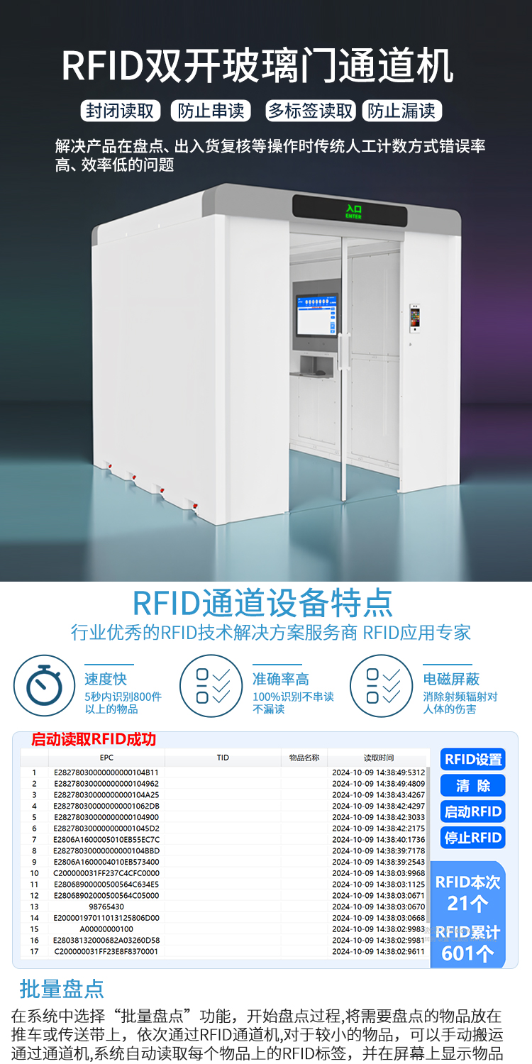 RFID智能盘点通道机仓储库存管理多标签同步读取批量扫描盘点设备