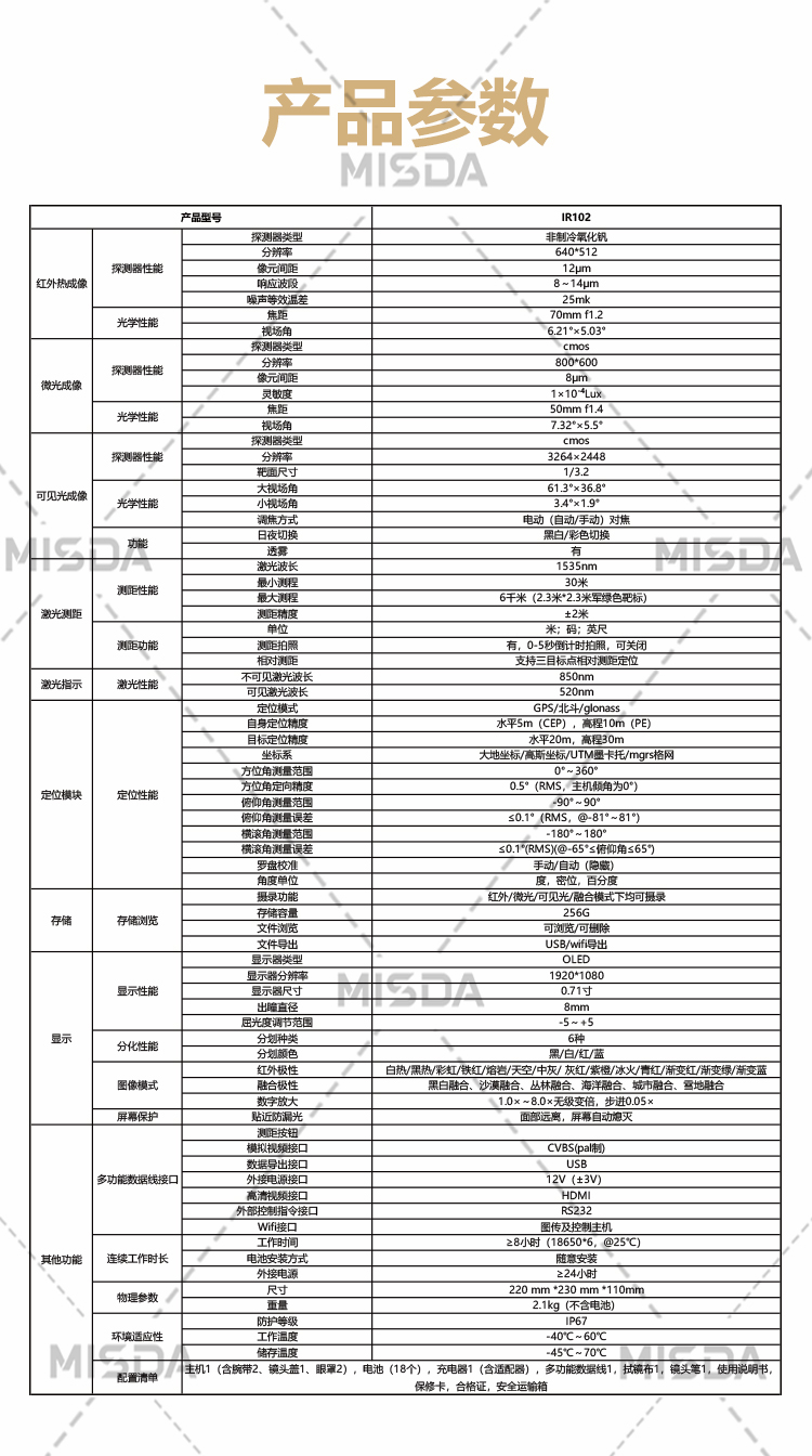 1.五路光学通道,支持红外、红点、微光、可见光、激光测距等多种工作模式