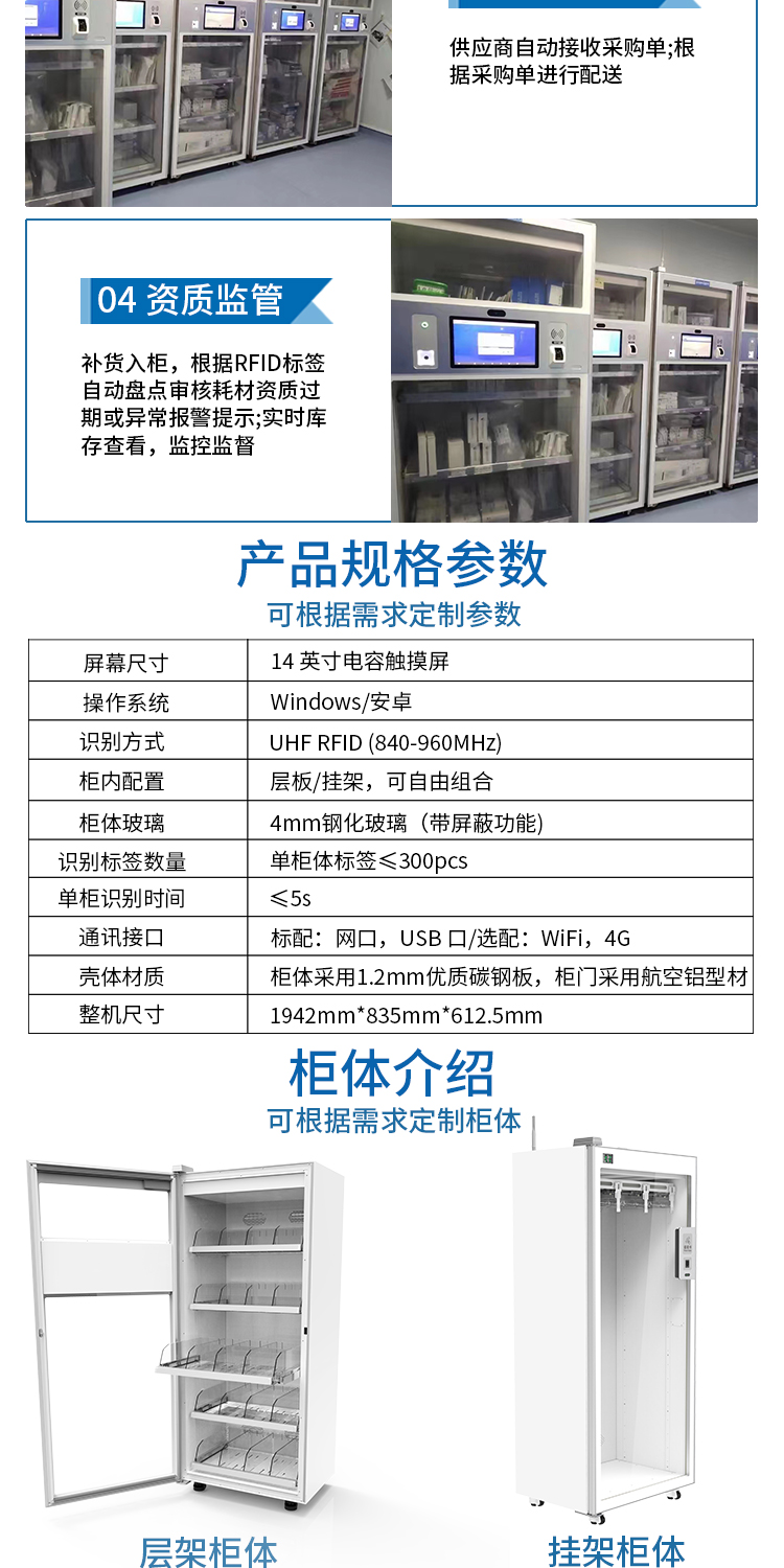 RFID智能耗材柜自动盘点无人值守高值耗材管理柜对接医院HIS系统