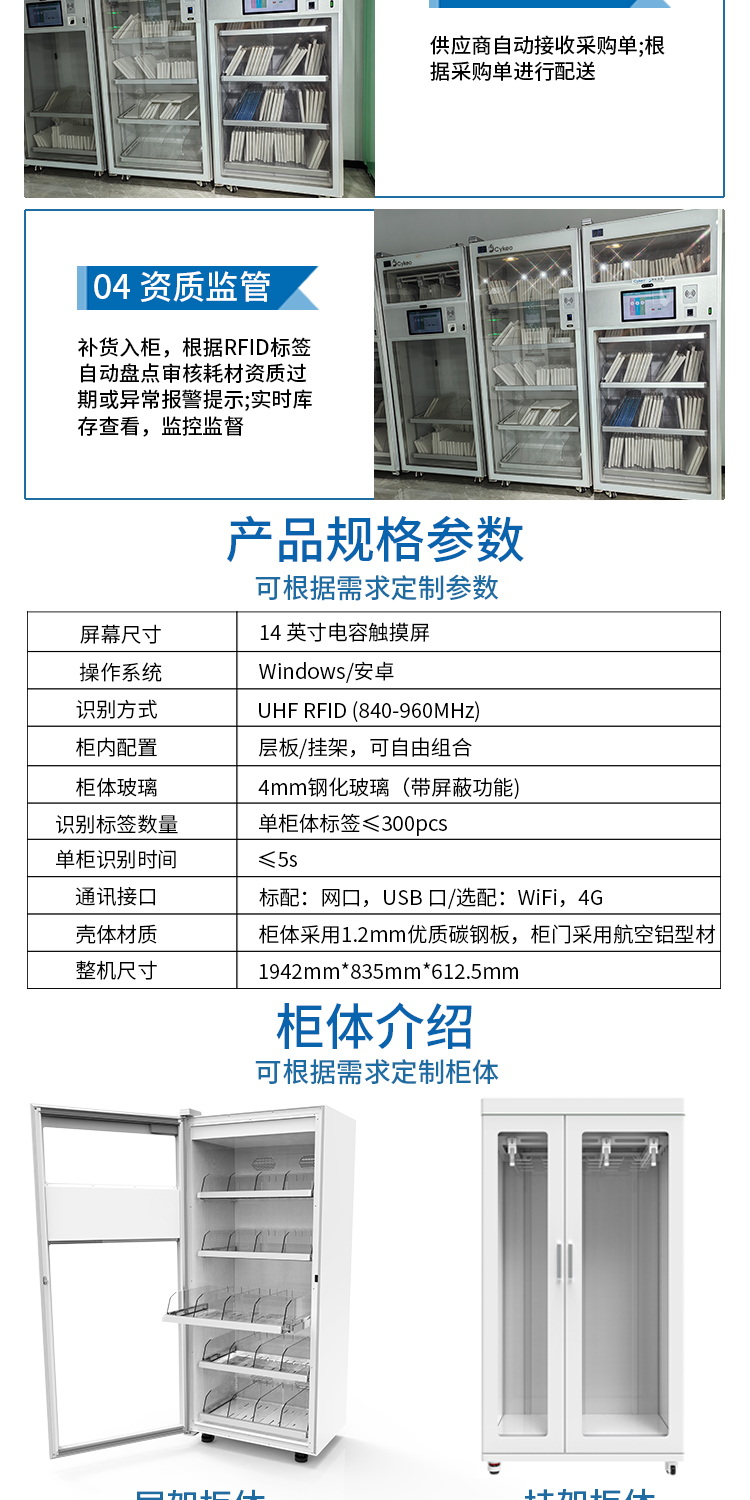 RFID智能低值耗材柜科研物料智能管理柜试剂样品存储实时库存监控