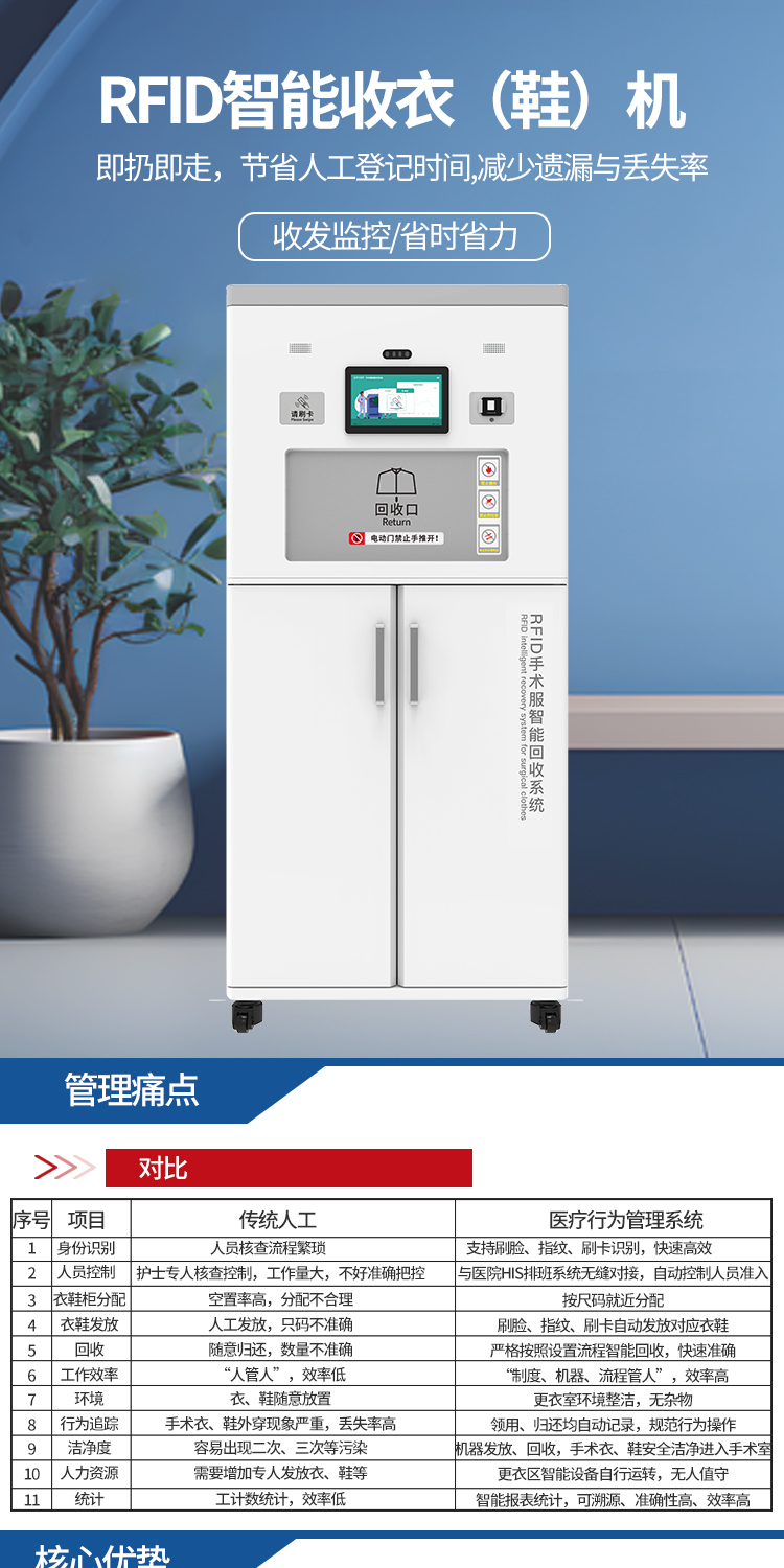 RFID智能发衣机医院自动衣物发放管理智能柜手术服装管理解决方案