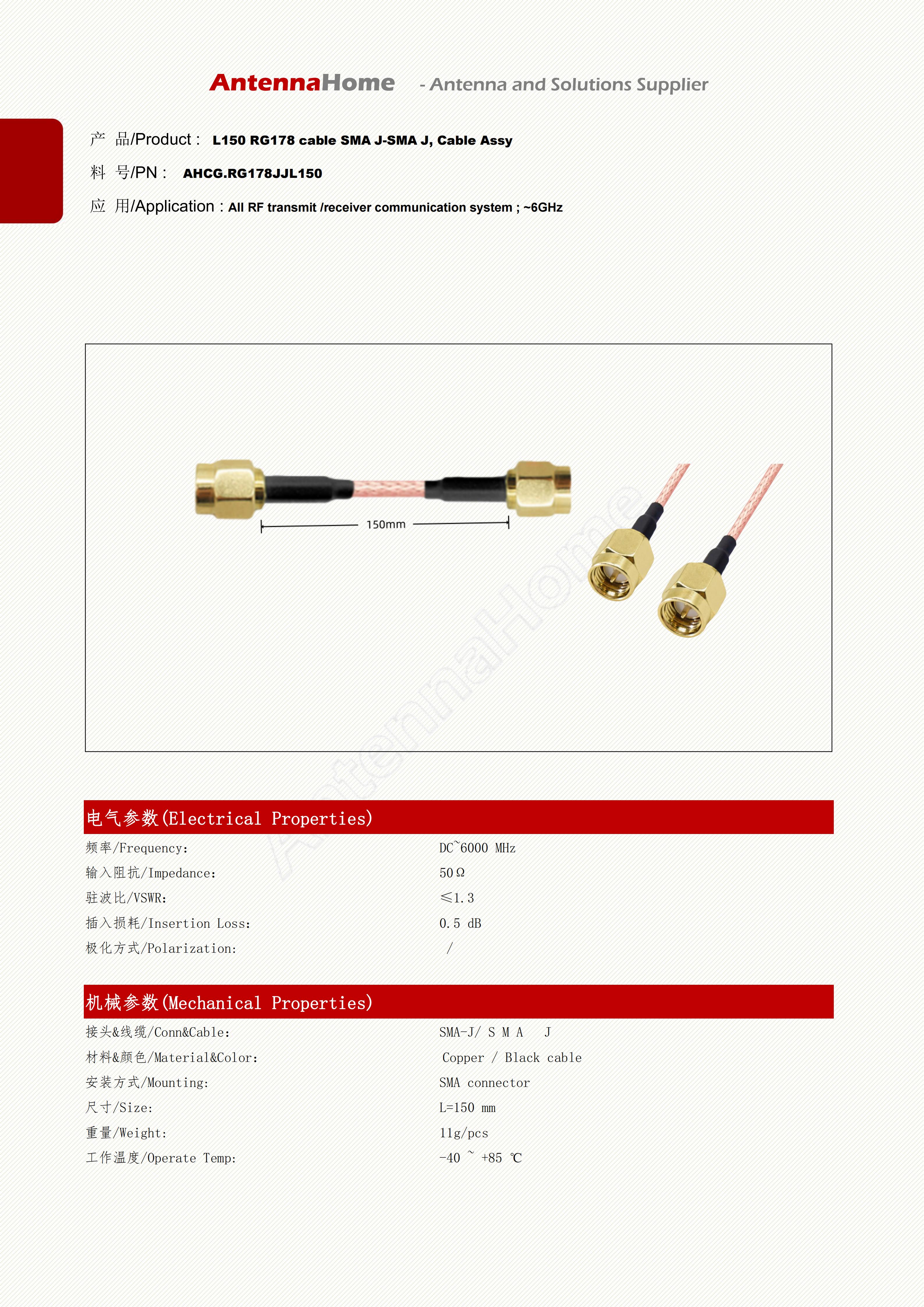 Datasheet : http://docs.antennahome.com/ant/AHCG.RG178JJL150.pdf