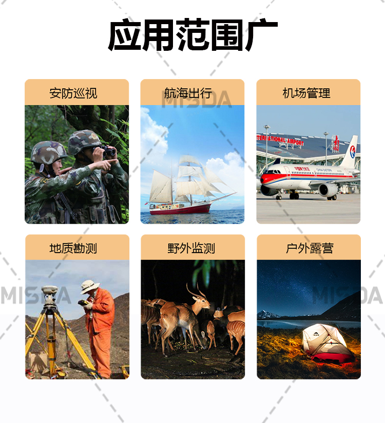 作用距离:白天不小于 2 千米;夜间全黑不小于 500 米;