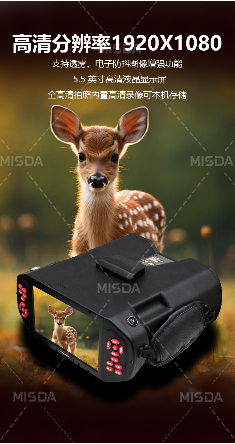 液晶显示:5.5 英寸高清液晶,内置录像可本机存储,采用高分辨率高清晰 1920*1080。